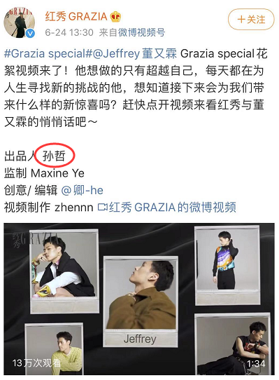 现在官博上各种明星花絮视频上,出品人都写着“孙哲”。