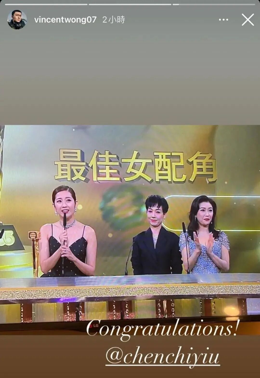 但拿到视后林夏薇还是激动得不得了,她说:“我2005年入读中央戏剧学院,由跑龙套到今日可以拿这个奖,大家都说台上一分一分钟,台下十年功,我资质不好用了17年,多谢公司给我那么多机会……”