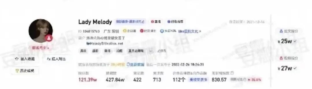 即使没有为他们的广告宣传买单,但对他们社交平台的关注和支持,无形成也成为了他们报价的“底气和资产”。