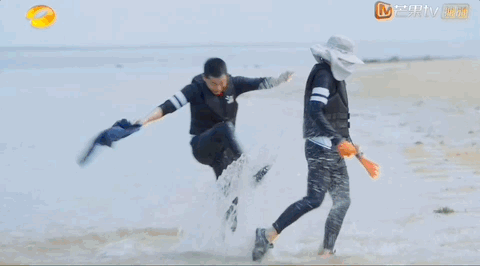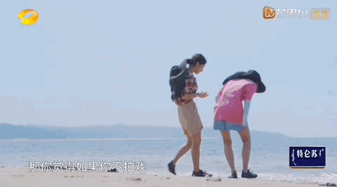 这些年轻人玩在一起,不需要什么剧本,本身就是青春剧。两位妹妹是文艺片的画风,刘昊然、张宥浩和彭昱畅则是“三傻大闹海滩”。