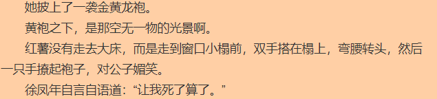 好比说给徐凤年生娃的红薯,原著里写这俩人第一次搞颜色,红薯没有经验,却把徐凤年搞到团购海狗丸。要知道徐凤年是从萝莉搞到熟女啊~