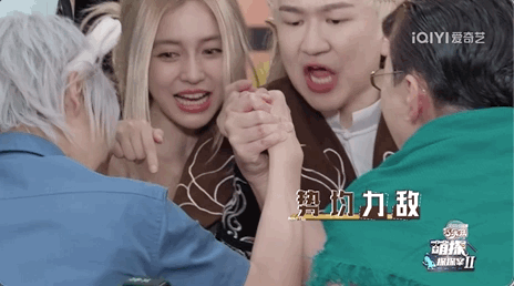 逐渐玩上头,到了掰腕子环节,现场分分钟表情包乱飞。