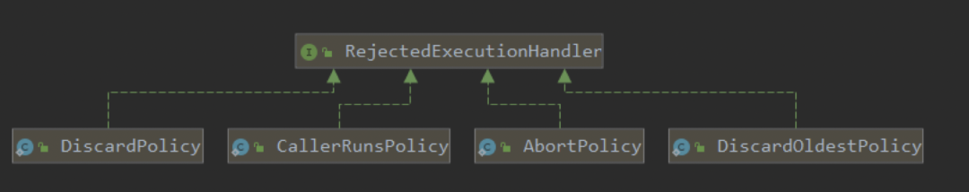 RejectedExecutionHandler:饱和策略,当队列满了且线程个数到 达maximunPoolSize 后采取的策略,如AbortPolicy 抛出拒绝执行;DiscardPolicy 丢弃该任务。