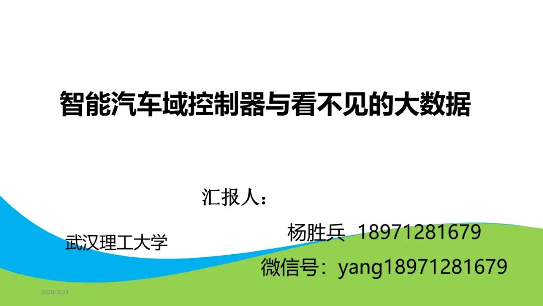 杨老师:各位朋友大家好,今天晚上我就《智能汽车域控制器与看不见的大数据》为主题为大家做一个分享。