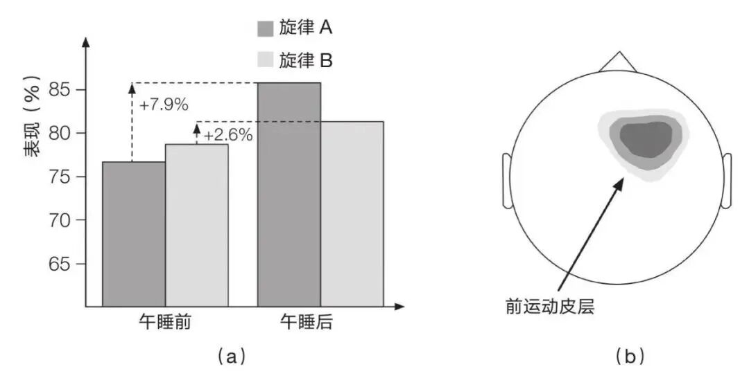 在一项研究中,研究人员让被试者学习A、B两段钢琴旋律,在被试者们午睡时轻轻播放旋律A的录音,午睡过后再次测试发现,旋律A、B的演奏准确率都有所上升,而且旋律A的准确率上升得更多。