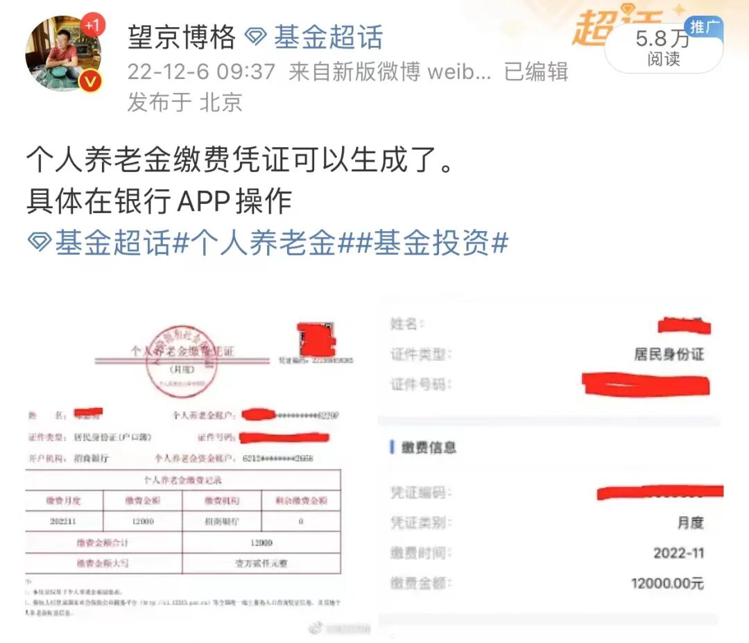 博格虽然工资不高,但是也要给大家当一回“小白鼠”,11月25日开户并缴存12000块钱,今天在银行App上下载“个人养老金缴费凭证”,然后上传到“个人所得税”App上申请税收优惠了,在明年申报2022年个人所得税的时候,应该就可以多退点税了。