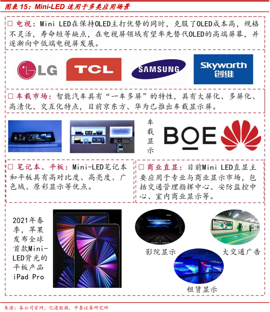 Mini LED技术适用于VR、车载、TV、NB/平板等多类应用场景,未来成长空间广阔。