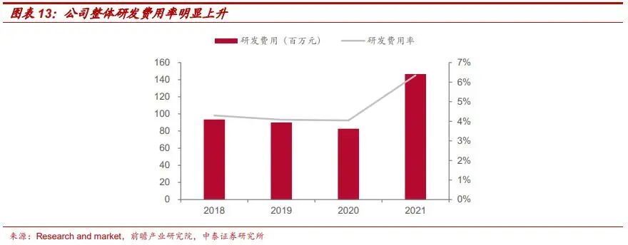 传统业务研发投入稳定,与科华并表后研发费用快速提升。2018到2020年公司的研发费用为0.93/0.90/0.83/1.47亿元,研发费用率为4.30%/4.08%/4.04%/6.35%,2018-2020研发费用率较为稳定,主要是由于公司传统业务已较为成熟,2021年公司研发费用率同比提升了2.31pct,主要是由于光刻胶高壁垒高难度的特性,公司加大对电子材料研发的投入力度。