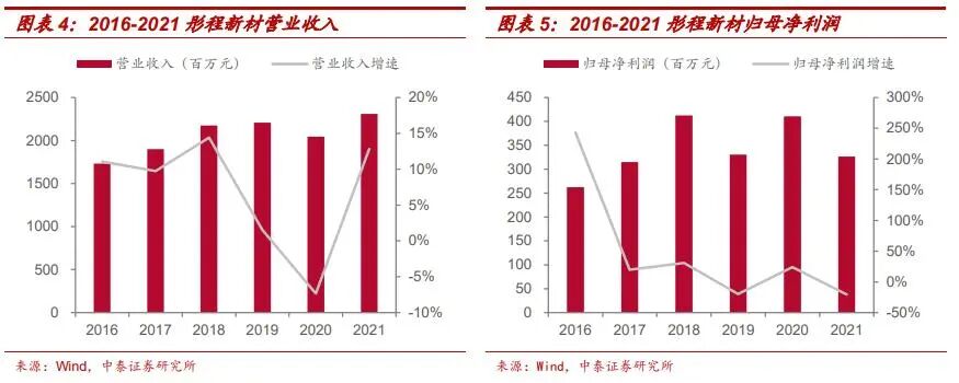 疫情致橡胶主业承压,光刻胶成为第二增长极。2018/2019/2020/2021年公司的营收分别为21.75/22.08/20.46/23.08亿元,同比增速依次为14%/2%/-7%/12.83%。归母净利润依次为4.12/3.31/4.10/3.27亿元,同比增速分别为30.93%/19.81%/24.17%/-20.44%。2016-2021年,公司营收CAGR为5.9%,净利润CAGR为4.48%。期间,2020年营收同比下滑7.34%,主要因为在疫情的影响下公司酚醛树脂销售均价同比下滑了13.26%,但同年归母净利润同比+24.17%,主要原因是公司获得1.7亿的投资收益,若剔除投资收益的影响,则2020年实现归母净利润2.4亿元,同比-10.69%。2021年营收同比增长12.83%,但净利润同比下滑了20.44%,原因主要是原材料大幅度涨价带来毛利率承压。苯酚、甲醇等是公司传统主业的重要原材料,苯酚的上游是纯苯,2021年因为原油价格上涨导致纯苯等原材料大幅上涨,从2021年年初的价格最低点到年末的最高点涨幅超过60%,对公司毛利率产生明显影响。此外,2020年1月开始新会计准则实施,运费被纳入公司的经营成本,公司整体经营数据受到了一定的影响。