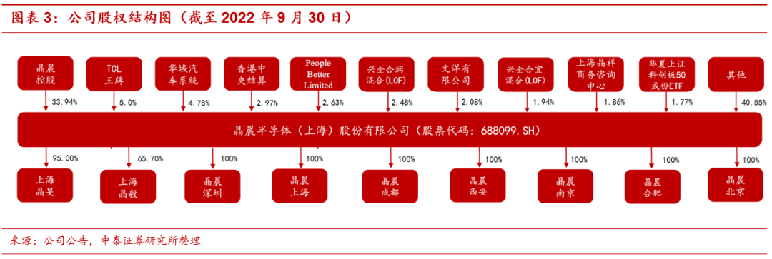 股权结构明晰,核心客户持股。公司控股股东为 Amlogic (Hong Kong) Limited(晶晨控股),控股型公司无实际经营业务,持有公司33.94%股权。公司下游关键客户TCL、华域汽车、小米等战略入股,实现了晶晨与客户之间的深度合作。截至2022年9月30日,TCL、华域汽车、People Better(小米旗下基金)持有公司股份比例分别为5.00%、4.78%和2.63%。公司子公司主要从事相关芯片的研发与销售业务。