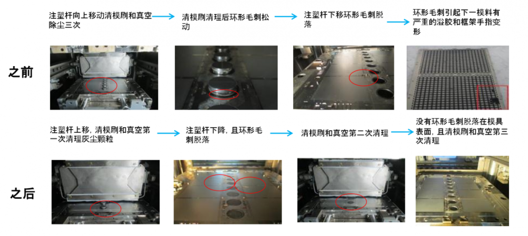 优化注塑转进参数,确保模具表面没有环形毛刺。