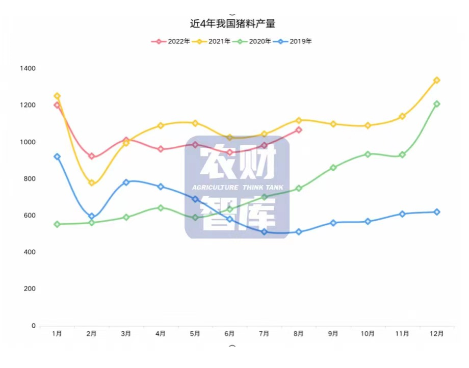 3、9月中,豆粕报价上涨至5000元/吨,单日上涨100元/吨,较7月末份上涨800元/吨。4、9月众多大型饲企相继宣布涨价,涨价范围设计猪料、鸡料、水产饲料、反刍料等,涨价幅度在50~200元/吨。值得注意的是,部分企业再一周内两次宣布上调价格。5、相关人士认为2022年下半年的豆粕价格或出现前高后低走势,即下半年的豆粕高点出现在三季度,低点出现在四季度。![]()
