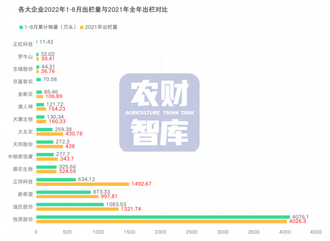 2.2大型猪企出栏目标与累计出栏量(2022年1-8月)