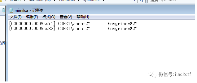 执行如上命令, 然后只要目标机器不重启,在目标机器上登录的用户名和密码将会被记录在 C:\Windows\System32\mimilsa.log 文件中。