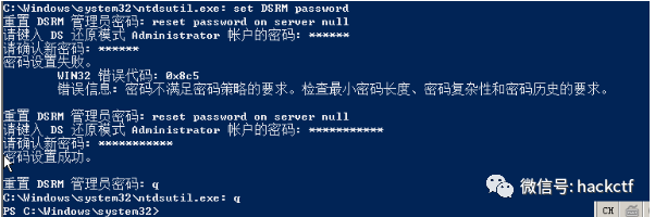 1:只有当本地AD、DS服务停止时,才可以使用DSRM管理员账号登录域控制器