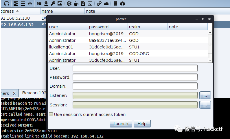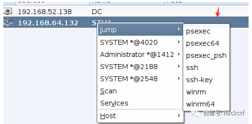 在cobalt strike里找到域控,然后使用psexec模块,选择一个本地hash即可。