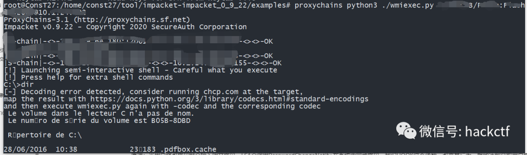 2.proxychains wmiexec.py 域名/用户名:密码@ip 获得shell