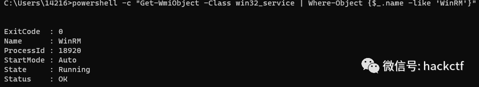 我们可以通过如下powershell命令查看机器上的winrm是否正常运行