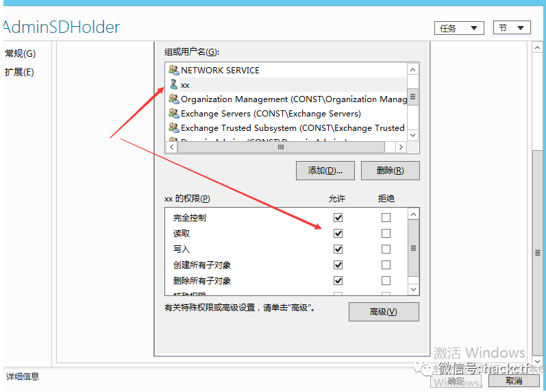 然后默认等60分钟,待ADMINSDHOLDER生效后,xx就获得所有受保护对象的完全控制权了