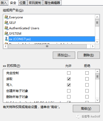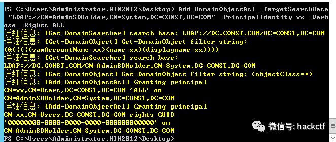 Add-DomainObjectAcl -TargetSearchBase "LDAP://CN=AdminSDHolder,CN=System,DC=CONST,DC=COM" -PrincipalIdentity xx -Verbose -Rights ALL |