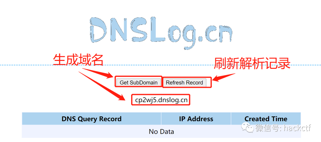 此时访问dnslog平台://dnslog.cn/点击页面上Get SubDomain生成专属子域名