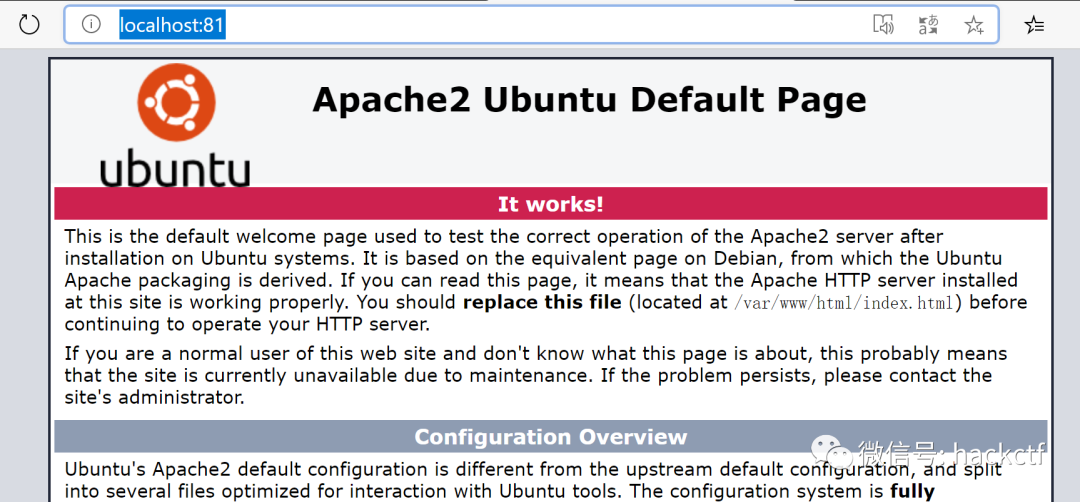 此时访问//localhost:81/应当出现apache的默认页面,证明环境搭建完成: