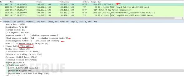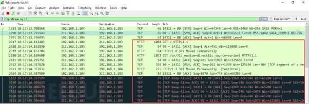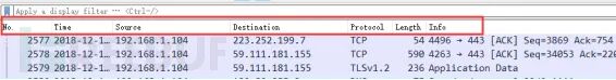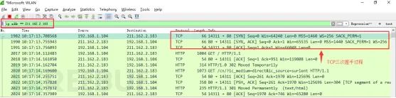 Step3:输入过滤条件获取待分析数据包列表 ip.addr == 211.162.2.183