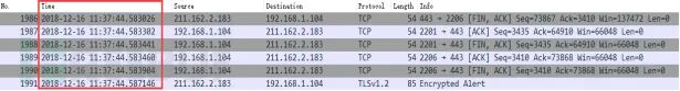 调整数据包列表中时间戳显示格式。调整方法为View -->Time Display Format --> Date and Time of Day。调整后格式如下: