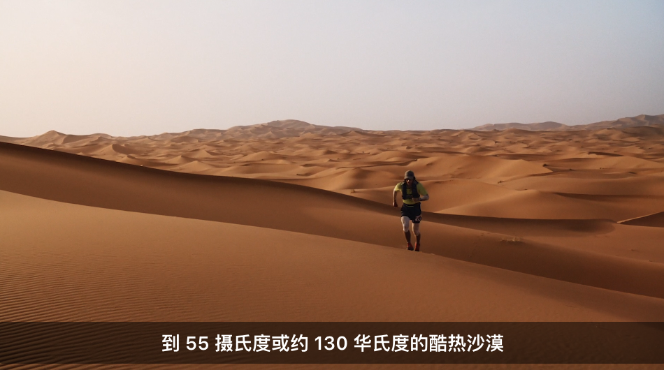 它还能适应各种极端环境,从 -20°C 的寒冷雪山到 55°C 的炽热沙漠。Apple Watch Ultra 已通过 MIL-STD 810H 相关项目的标准认证。