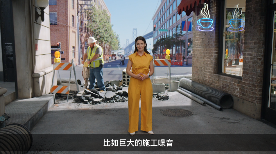 此外,还加入了自适应通透模式,在强大的 H2 芯片驱动下,设备端处理技术可降低吵闹的环境噪音,例如过往车辆的警报声、建筑施工噪音,甚至音乐会中的扬声器声音。