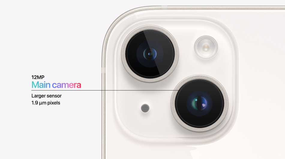 iPhone 14 和 iPhone 14 Plus 的影像配置是一样的,均搭载具备更大感光元件和像素尺寸的 1200 万像素主摄(ƒ/1.5 光圈)、全新 1200 万像素前置原深感摄像头,以及 1200 万像素超广角摄像头(ƒ/2.4 光圈和 120° 视角)。