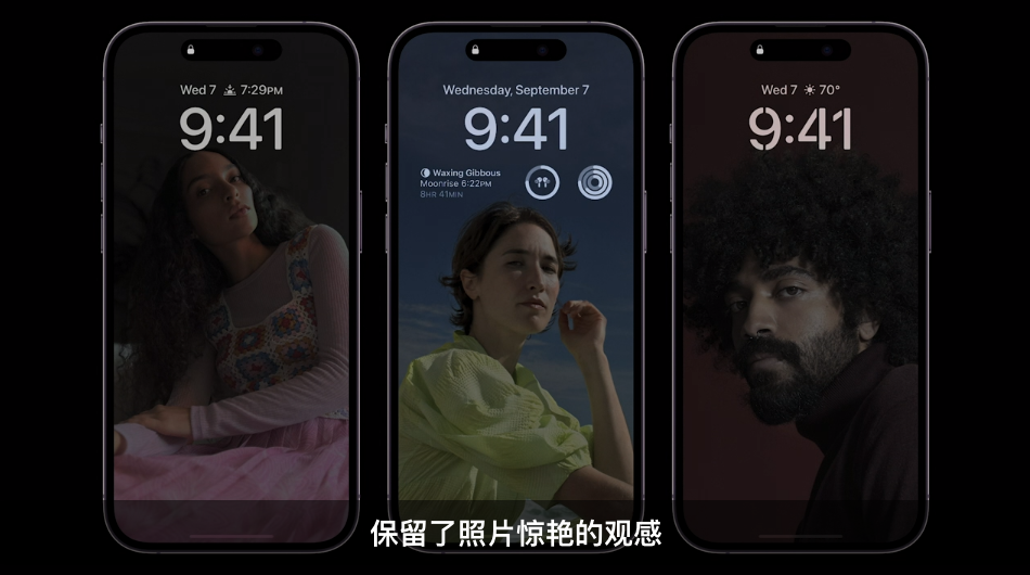 iPhone 14 Pro 和 iPhone 14 Pro Max 加入了一项和安卓阵营息屏显示不一样的全天候显示功能,在全新 1Hz 刷新率和多项节能技术的加持之下,屏幕可始终显示锁屏画面,但不是息屏,时间、小组件和实时活动始终一目了然。