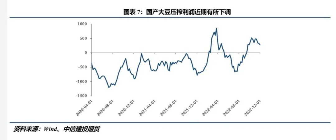 我们认为,在疫情管控放松的背景下,大豆的食用需求短期可能有所提升。主要有以下两个原因,其一是随着全国气温的骤降,南方蔬菜大量集中上市带来的供应压力有望得到缓解。从历史经验来看,寒冷天气的到来往往会伴随着蔬菜价格的阶段性回升,这就为大豆的消费带来了一定程度的可替代空间,前期被挤占的市场份额有望收回。其二是以往疫情的严格管控措施禁锢了消费主体的购买力,随着人员流动及物流运输的恢复,积压的消费意愿可以得到良好释放,叠加此时处于春节前一个半月,正是备置年货的旺盛阶段,大豆具备弱刚需消费属性,其消费需求有望得到改善,进而提高产销区贸易商的购销意愿。但值得注意的是,自10月以来,各地疫情政策的反复无常使得市场的预期一次次被打乱,南北产销区之间的运输状况也相对混乱,因此,国产大豆需求短期内究竟能否得以好转还取决于市场参与者能否重建信心,重构良好的预期。