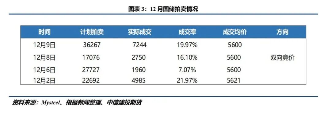 12月国储持续“拍陈入新”,我们在《【大豆周报】疫情有所缓解 短期关注春节前后终端需求》中提过,部分直属库第一阶段的收储已经结束,但根据市场反馈来看,新豆增产的压力并没有得到较好释放,持续拍卖陈豆也许是为了给仓库屯出空间,利于本轮收储的进行。从拍卖数据来看,12月上旬共进行4次拍卖(包含一次双向竞价购销),整体成交率达16.3%,虽较11月有所上升,但国储拍卖的陈豆平均品质高于新豆,而成交均价却稳定在5600,反映了竞拍主体对终端需求并无明显的乐观预期,提价购入大豆的意愿不高。