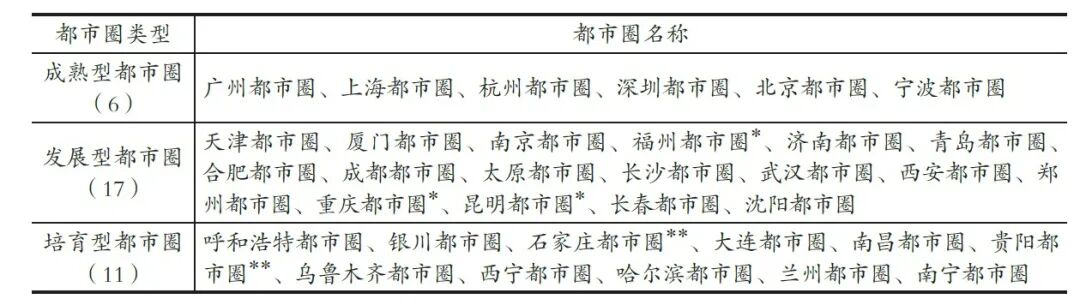 根据清华大学城镇化研究院发布的报告,只有广州、上海、深圳、杭州、北京、宁波等6个都市圈位列成熟型,17个为发展型,11个为培育型。