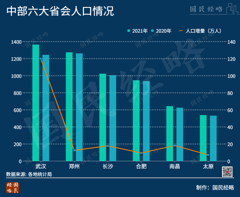 2021年,河南、湖南常住人口分别减少58.2万、28.3万,而作为省会的郑州、长沙仍大增12.5万、17.8万。