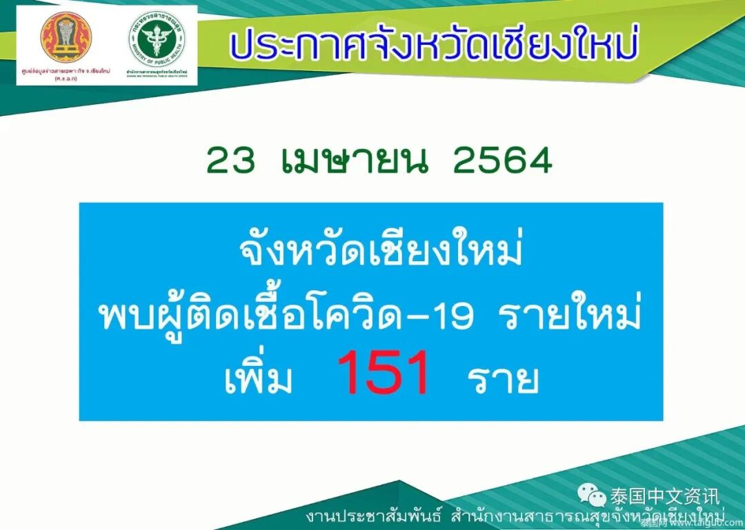 泰国网报道,据泰国清迈公共卫生办4月23日消息,清迈新增151例确诊病例,4月1日至今清迈累计确诊2970例,累计治愈403例,尚有2567例在院治疗。