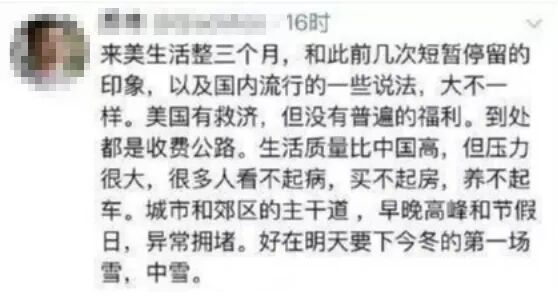 退休后的周文伟,希望享受更好的生活,他一直觉得美国是最好的国度,非常向往。他将手中积攒的财富,一口气买下美国12套公寓,开始过起了包租公的生活。然而,他想象中躺着赚钱的美好生活并没有到来,麻烦却接踵而至。在美国,一般是一家人租一套大房子,租小公寓的,要么是贫困无业者,要么是从事不法活动的人。他曾将房子租给一个墨西哥女孩,结果对方和男友住在里面,长期拖欠房租。他找对方要钱,可对方却将周文伟打到骨折,抢走他身上近5000美元,逃之夭夭。警方将两人捉拿归案,却不归还周文伟的钱,称那是“证据”。还有其他房子的租金,也是遇到这样那样的阻碍,很难收到租。钱收不到,却要持续支付高昂的物业费、维修费,房产税等等。为了保住房子,他只能节省开支,蜗居在一个储藏室,并不断去做兼职。谁能想到,当时在台湾享有声望的大学老师,到美国给别人看大门?周文伟也觉得屈辱,但是没有办法,各种费用快要将他拖垮,他只能拼命打工。但他卖力赚钱,也只是杯水车薪,根本填不满公寓各项支出的窟窿。美国医疗费用太高,周文伟只得低价卖掉剩下的公寓,把妻子送回台湾治病。年老体衰,再没有地方愿意录用他,可他要吃饭、要租房,生活极其困难。被捕时,周文伟绝望地喊着一句话:我在美国买了12套房子,但美国却不给我养老。也许连他自己都想不通,前半生累积的财富、声望,为何在美国一朝倾覆?他辛辛苦苦努力一辈子,原本可以安享晚年,过着愉快幸福的日子,却在美国倾尽家产,从中产彻底沦为底层。疫情之下,他们觉得国内的严控政策限制了他们的“自由”,他们觉得国外的生活就是天堂,国外早就不用戴口罩,经济快速恢复,国外的人们就是过着神仙一般的日子。他早就厌倦了国内疫情的各种封控,准备“润”去国外,他在出发前,就壮志豪情地说:为了自由,他要破釜沉舟。明明在国内开着奥迪,带着名牌表,为了心中的天堂,他决定舍弃一切。可是到了国外,他找不到好的工作,只能从最底层的工作干起。他的工作环境非常差,在餐厅后厨打杂,逼仄的空间,天天都是处理被宰杀的动物。从开始在后厨干活,短短一周的时间,他就发文说:大概率还是要回国了。他忽然之间明白了:别无脑“润”,别以为出国了就是天堂,国内的底层到了国外也只能干底层工作。一天干12小时,吃饭都没有时间,自由民主和我有半毛钱关系?很多人只看到,国外的时薪高,国外不用加班,国外多么自由,却没想过,自己到了那里能干什么?在国内积攒的财富也好,在国内累计的人脉也罢,在国外通通没用。如果你不是富得流油,在人生地不熟的异国他乡,那就只能从零开始。正如这位“润人”所写:在国内混不好,就觉得社会不公平,觉得自己会翻墙,就比大多数人聪明,可以弯道超车。其实错了,去国外并不能改变什么。不仅仅是底层“润”去国外日子艰难,中层阶级其实也是一样。他原本是北外一名副教授,靠着不断“舔美”,成功润去美国。离开之前,他还说:“要想说真话,还不害怕,只有去国。辞去教授,做一个干净的人,离开故土,做一个安稳的人。”然而,他的专业既不是搞科研,又不是攻技术,到了国外,自然找不到合适的工作,到国外任教更是不可能。他端着知识分子的架子,既找不到合适的工作,又不想从事体力劳动,只能靠老婆养活。他老婆原本是在北京政府大楼敲电脑的,到了美国只能干收银、刷盘子养活他,一养就是5年。他一心觉得美国是天堂,可是到了美国才发现,自己想象中的,和现实根本不一样。公路要收费,福利不普及,买不起房,看不起病,生活成本高。最惨的是,天气热,他连空调也买不起,再不交房产税,女儿连免费受教育的机会都没有。新冠病毒爆发的时候,他所在社区的公立学校一位老师死于新冠,让他心有戚戚。在害怕之余,他说:不像中国,美国不会对疫情投入大量人力物力财力……有点想回国,但发现只有投案自首。放弃国内大好的生活,奔赴心中的乌托邦,结果,那个完美的象牙塔,居然只是他心中的幻想。润到国外,有人想得很美好,可想融入一个文化背景跟你完全不一样的国度太难,阶层滑落就在一念之间。有人卖掉北京的房子,去美国送外卖、开出租、装修、拖地。有人从深圳润到温哥华,做超市清洁工3年,体重骤降。有人将自己所有的不如意,推到国家头上,有人觉得,自己换个国度会生活得更好。可当你真的抛下一切出去,或许才会发现,不过是黄粱一梦。最怕的是一些人,他们混得不好,生活不愉快,就觉得一切都是国家造成的,觉得生活不如意都是别人的错,可是你即使换一个国家,也会过上这样的生活。在国外,照样有很多人找不到工作,你一个外来人,有什么自信把好工作从他们手中抢过来?之前他们想“润”去国外,祖国没有拦他们,现在他们想回国,又说祖国没有张开怀抱欢迎他们。比如这个人想回国,在澳洲做个核酸要145刀,张嘴就喷中国领事馆为外籍华人回国设置障碍。还有的人,之前就发微博说:感受到了在纽约的快乐,赶快找工作留下来。然而疫情爆发,不听劝告从埃塞俄比亚转机,就说国家不管他,没有包机把他接回来。他们从头到尾只想到了自己,从来没有想过自己给国家做过什么,带来了什么。你不爱这片土地,自然有人来建设她,维护她,但不要伤害她,污蔑她,更不要两面三刀。中国的国籍,是世界上最难入的国籍,你要放弃就放弃,但想回来就没有那