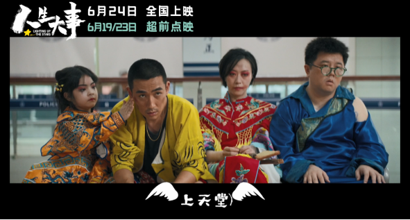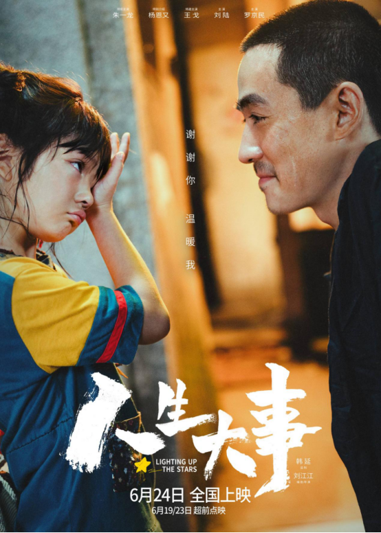 最让我印象深刻的是,在一个下雨的夜晚,莫三妹照顾了小文几天之后,把小文送到她舅舅身边。可是,小文的舅妈一直骂,不肯再收养“无父无母”的小文,一脸的白眼和嫌弃。莫三妹于心不忍,他力排众议也要接她回家,他说:“我就是看不惯那些妖魔鬼怪(欺负她)”。有一个细节我记得很清楚,分别的时候,小文的舅舅问她,愿意跟着自己还是跟着莫三妹?这是一种信任,更是一种同类人之间的笃定和托付,他在最难的时候,给小文伸出了一双温暖的双手。莫三妹对小文是这样,而小文回馈给莫三妹的也是这样。在莫三妹需要三十万元的时候,她想尽各种办法,并去求自己外婆生前的朋友。莫三妹的职业是与死人打交道的,可小文一点也不嫌弃他,不仅帮他拉生意,还称呼他的职业是“种星星的人”。他们彼此之间没有血缘,却因为惺惺相惜的陪伴与付出,建立起了浓厚的“亲情”。电影最感动人的场景,是小文被送走的时候,在车上大声喊“爸爸”,而莫三妹一直在车子后面追着,我看到电影院有很多人在一边擦眼泪一边哭。有时候生命就是如此神奇,相互遇见,相互接纳,相互雕琢,相互支撑,最后成为彼此不可分割的一部分。是小文的到来让莫三妹的生命开始改变,他开始有了守护他人的意识,懂得了肩上的责任与担当,逐渐变得成熟、可靠。甚至陪着小文做游戏、玩玩具、去幼儿园表演的他,已经有了做父亲的模样。而莫三妹的温柔与善良,粗中带细的陪伴和教导,也让小文悄悄发生改变。她开始变得懂事,卸下了防备,学会了接纳别人,更学会了用自己的方式去表达对别人的爱和关心。他们就像是两只在荒芜的雪原中相遇的一对大小孤狼,相互疗愈,相互温暖,相互支撑,一起度过人生漫长的寒冬。刚刚刑满释放,女友给他戴了绿帽,父亲更是一见他就臭骂一顿,还要当着街坊邻居的面“人前训子”。因为看不起自己的职业,莫三妹对“上天堂殡葬服务”经营得一塌糊涂,店面一片混乱,东西到处乱放,他对待工作非常不负责任,完全不靠谱。然而就是在这样的一地鸡毛之下,随着小文的到来,他慢慢转变了心态,开始正视自己的生活,用信念地去对待自己的职业。记得他的前女友丈夫“六哥”因车祸去世,尸骨被碾压到识别不出全貌。前女友求助无门,只得来找莫三妹,恳求他帮丈夫还原尸体全貌,送逝者一个体面的离去。面对曾与自己有过节的“六哥”,莫三妹放下了心中的仇恨与脾气,强忍着生理上的不适,在父亲的鼓励下,把尸体一点一点地拼凑、修饰,直至还原。当“六哥”的家人重新看到那张熟悉的脸庞之后,他们激动得泣不成声,不停地哭喊着“这就是我的儿子,这就是我的儿子......”这次“拼骨”的过程,不仅让莫三妹得到了对方家属由衷的感激,他自己也从中获得了从未有过的成就感,自己并不是一无是处。而在这之后,转换了心态的莫三妹,店铺越做越好,店面也开始变得整洁,原本脏兮兮的墙上贴上了供小文学习的字母表,一直邋遢的床铺也被他收拾得井井有条。就连那台一直以来被人嫌“晦气”的贴着殡葬广告的灵车,他们也面画上了美丽的星空。生活其实就像一场填色游戏,你领到的也许是一个复杂甚至糟糕的图案,但你依然可以认真地把它涂成最美丽的颜色。人生往往就是这样,在最深的谷底,总能看到最美的风景。小文被家人抛弃,又失去了外婆,可是她在最孤独最无助的时候,那个能播放外婆语音的布老虎,治愈了她的心灵,让她有了面对生活的底气和勇气。老莫对自己不争气的儿子总是生气又绝望,可在父子二人一同经历了一次“拼骨”后,看到了儿子的成长,他也学会了接受儿子的不足,翻看儿子的工作笔记时,脸上也有了笑意。我们这一生中,难免有被“五指山”压倒在地,觉得人生无望的时刻。可哪怕只要有了一点点信念,一点点美好的希望,我们就能转换心态,冲出谷底。我们生活的真相或许就是一地鸡毛的,但只要有了信念,有了琐碎的日子里那一点糖,我们就依然能把最鸡飞狗跳的日子过成流淌的诗篇。即使生活把我们按在地上碾压,我们同样也能在这生活的泥泞中开出最美的人生之花。“上天堂”的隔壁是一家婚庆公司,建仁与白雪结婚时,红毯从婚庆公司铺出,却又在堂前拐了个弯,铺进了他们曾经的家,也就是“上天堂”殡葬店铺的门面。干干净净地来到世上,找到相伴一生的人,然后在时光飞逝后,走到人生的尾页。婚丧嫁娶,皆是人生大事,既然如此,死亡又有什么好怕的呢?同样,片中的几次“别出心裁”的葬礼,也不禁让人深思关于死亡的意义。被小文画花了的小女孩的骨灰盒,意外地成了女孩父母的慰藉。给活着的自己办“皇帝”葬礼的老头,只是希望自己的家人不要为了拆迁款再争吵分裂。还有莫三妹为老莫办的“烟火”葬礼,看似荒诞,却一定是老莫最希望看到的结局。你会发现,这些不符合我们传统认知中的葬礼,它们仅仅只是形式不同,但却更能承载着我们的深思与追忆。《人生大事》的主题看似是一场“死亡教育”,但我却觉得它更像是通过“死亡”折射“活着”。如何坦然地面对亲人的离世,如何更加坚强地活着,如何在困苦中与生活和解,是我们所有人的终生课题。其实,生命就像是一场聚会,每个人都在这场聚会中享受自己的人生、与他人建立联系,去感受爱。而那些先一步退场的,无非是奔赴了下一场聚会而已,总有一天我们也会和他们相