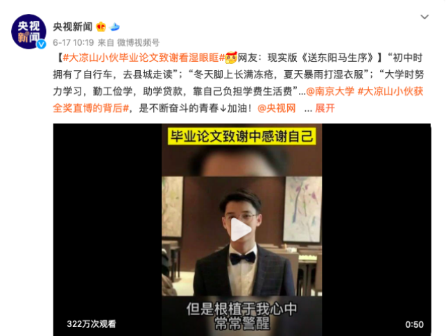 有人获得了理想的成绩,有人黯然神伤,几家欢喜几家愁。高考,作为绝大多数考生人生的分水岭,依然影响着他们人生的走向。在铺天盖地关于成绩的热搜里,一封致谢信,全网刷屏了。他是南京大学一名大四学生,收到了香港中文大学全奖直博录取通知书。第一次看到他的照片,很多网友惊呼:明明可以靠脸,偏偏要靠才华。然而看过他的家庭背景之后,才明白,他这一路有多不容易。出生小山村,家境贫寒,从小,他与母亲一起在田间劳作“插秧、割谷、喂猪……踏过泥泞,走过艰辛,十几年风霜苦雨,他才得以被看见。“从祖国大西南的阿普路村小学,到冕宁县第二中学,再到成都市石室中学,南京大学电子学院,我走了一条很长的路。”出生贫寒的孩子,命运就像风暴中的小草,稍不留神就可能被拦腰折断。中午没钱在学校吃饭,他只能踩着自行车,匆忙回家做完饭,再去学校。冬天,脚上长满冻疮,疼痒难耐,单衣薄裳,根本抵不住严寒。夏天,山间多暴雨,衣服书包被打湿,鞋里灌满雨水,只能靠着体温,慢慢烘干……学校离家300多公里,坐大巴翻山越岭37小时,让他的身体到了极限。为了省钱,也为了赶上这种差距,他一年只回两次家,其余时间全在学习。怕上不了学,怕家里负担太重,没人知道,他花了多少努力,才和同学们一起,坐在一个教室。这些苦难,任何一项落在一个人身上,也许都很难坚持下去。于是很多人,在这个辛苦而未知的过程里,选择了放弃。所有“逆天改命”的故事里,只有像陈时鑫一样的主人公,将坚持刻进DNA,才有可能看见那一点亮光。从落后的大山,一步一步,走向越来越宽阔的未来,他花了16年。“有的孩子一出生就含着金钥匙,而有的孩子出生却只含了一口痰。”穷人家的孩子,能攥在手里的东西,极少。稍不留神,那一丁点,也会被夺走。因为让我们感动的,不是他获得的成绩,而是他的坚持与韧性。就像他那一句:教育和知识,为我打开了一扇走向世界的窗户。在越来越多人质疑学习的意义的时代,依然有人,如苦行僧一般,扎根下来。就在不久前,中南财经政法大学优秀毕业生苏正民,也在全网引起热议。初中时,因为语言不通,落后太多,宿舍熄灯后,他打着手电在被子里学习。母亲文化水平不高,一直靠做环卫工,艰难撑起一个家和三个孩子。命运总算待他不算太差,好心人的帮助,党和国家政策的扶持,他终于重回校园。他说,他将带着知识回到大山,帮助更多的孩子。扎根基层,做那片黄土最忠诚的儿子。当他始终熬下去,没有放弃希望,在机会到来时,努力握住。他没有父辈的肩膀可以踏,但他,成为了下一代的基石。我记得,19年前,那个以900分满分,考上北大的寒门学子谭志佳。靠着读书,从小山村一步步走出来,进入香港大学硕博连读,顺利留校,从事研究工作。我记得,那个背着“疯娘”上大学的刘秀祥,吃了常人无法想象的苦,终于靠着读书走出大山。最后,他回到大山,去改变那些和自己一样的孩子的命运。你人生故事的开头也许充满坎坷,不过这并不影响你成为什么样的人。关键看你后来的人生路,你自己选择怎么走下去。总有一天,你经历的那些苦难和坎坷,会照亮你前行的路。耍宝审丑,没有一点内涵的网红明星,随随便便就赚到了上亿家产。苦读十几年的年轻一代,却在低迷的就业环境中,一筹莫展。我害怕的,不是多少人嘲讽高考制度;不是有人一遍遍强调读书无用;也不是他们不断重申“寒门再难出贵子”。我怕的是你真的相信了,你真的开始躺平,你真的放弃了改变命运的机会。不管时代怎么变,我们需要的,永远都是有内涵,有知识底蕴的人。在一众直播间中,杀出一条血路,他凭借的,是自己丰富的知识储备,信手拈来的人生金句。总有一些人,在这个浮躁不安的世界静下心来,沉淀自己,向内发掘自己。读书,虽然不能改变生命的长度,却可以改变生命的宽度。读书,虽然不能改变生命的起点,却可以改变生命的终点。爷孙俩在河边聊天。孙子问爷爷,你每天看那么多书,你记得住多少呢?如果反正都要忘记,为什么还要看?严歌苓说:“读书这项精神功课,对人潜移默化的感染,使人从世俗的渴望(金钱、物质、外在的美丽等等)中解脱出来。”或许,读书无法让我们大富大贵,却能让你重新认识这个世界。请相信,读书到一定深度,一定会让你看到人生的不同。◇ 参考来源: