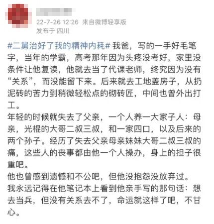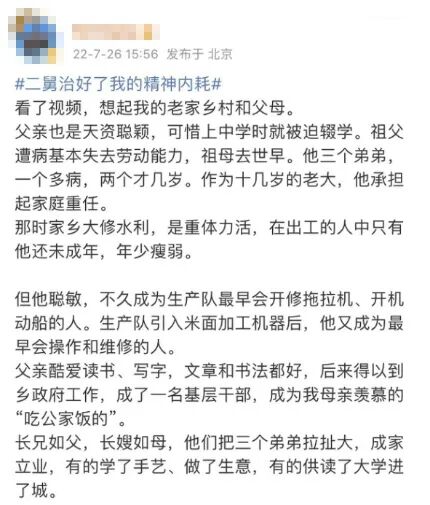 那位刷屏全网的“二舅”,让我想起了自己的父亲