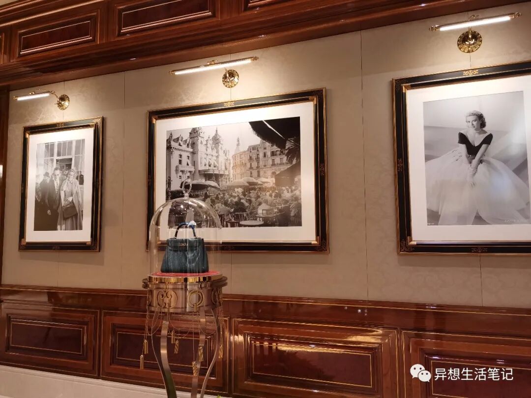 餐厅一角还有个爱马仕Kelly包的小展览,里面有讲到Kelly包得名的渊源。当年摩纳哥王妃Grace Kelly用包包遮住孕肚让这款包大火,于是爱马仕征求王妃和王室同意,把这款包取名为“Kelly”。喜欢包包的小伙伴应该很熟悉这个故事。
