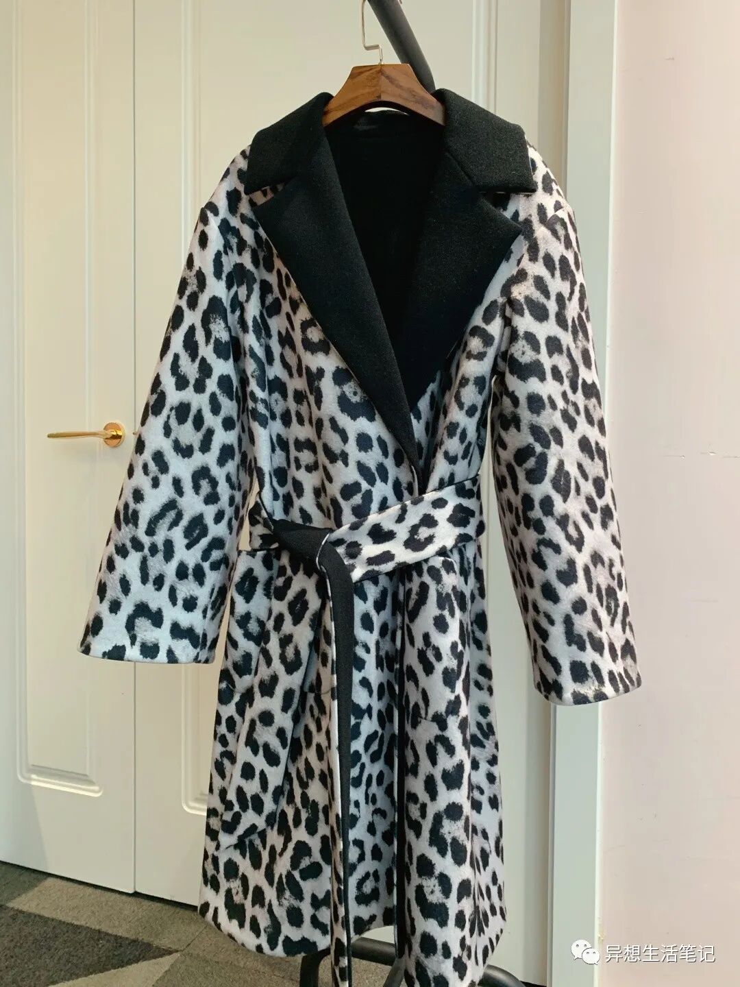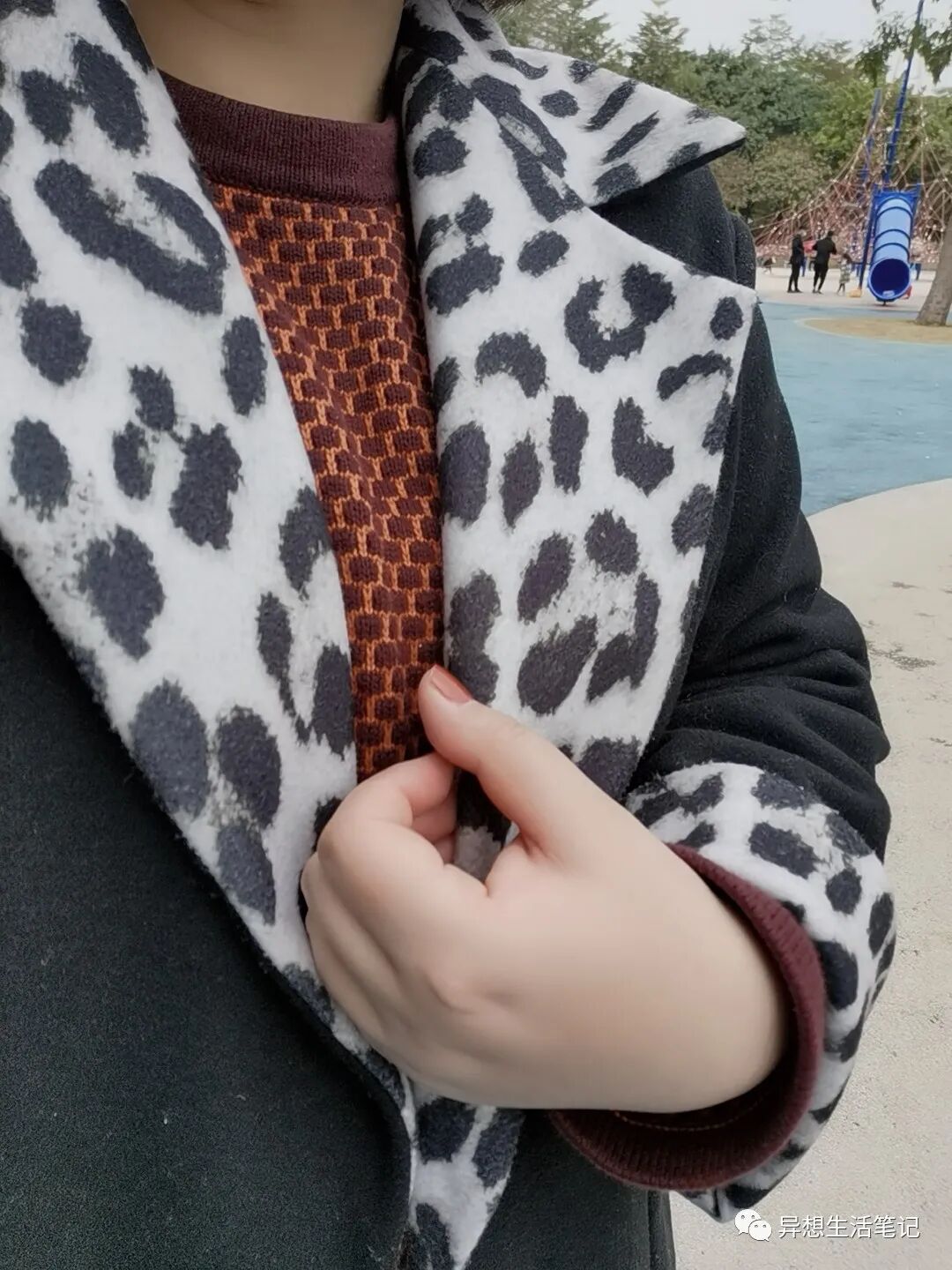 换成黑色那一面也会有豹纹领子和袖口,比正常的黑色大衣有设计感,可以系带也可以敞开宽松穿