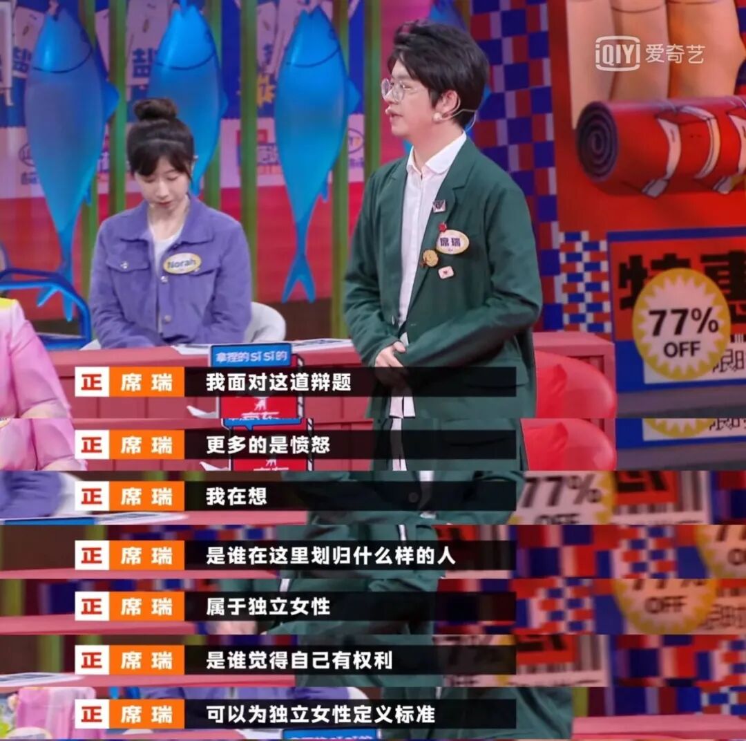 但仔细看,不仅仅是女性,只要是符合这个标准的人,我们大多都能说TA是独立的。发现了吗?独立女性和独立男性,标准几乎一致,但很少有人单独把“独立男性”这个词拎出来逐一比照男生是否满足如上条件。独立是不是就代表着凡是都得靠自己,完全不能向其他人寻求帮助呢?也不见得吧。整场比赛一二辩在讨论时,我总觉得没打中点,席瑞一开口我立马来精神了,他把“独立女性”这个词背后隐藏的陷阱都点了出来:如果有人开始要求女性证明自己是独立的,被要求该做什么不该做什么,这何尝不是另一种形式的道德绑架?Papi生娃后,就有网友“质疑”:你不是说自己是独立女性吗?为什么孩子要跟爸爸姓?你不是女权吗?为什么要结婚?当某些女性选择成为全职太太后,也有人骂:你们不是独立女性吗?怎么能够选择放弃工作回归家庭?一时之间独立女性成了另一种标杆,仿佛代表女性要活成一座孤岛,经济独立那是必然的,最好别结婚别要孩子,别为父权再增加任何一枚筹码,否则你就是为虎作伥。这种道德绑架真要明辨!至少性别对调,我们很少探讨独立男性是否应该自己买房、独立男性是否应该自己带娃、男性该做什么证明自己够独立。独立≠孤立,男性也总有需要女性帮忙的时刻,女性也无需执着于“独立”这个身份,给自己限制各种条条框框。有位小伙伴没看节目,但一听到这辩题就说,独立女性,可不就是想收就收,不收也无妨,要是有人想用这笔钱要求你干这干那可以拒绝啊。整场辩论结束后,马东还提了一个有意思的观点:以往让无数人纠结的事儿,当下早就被法律规定得清清楚楚,无须太过纠结。尤其是今年《民法典》改革,《婚姻法》并入《民法典》成为《婚姻家庭编》,很多法条都有了新的规定。今年第一篇推送,我就写了新法中争议颇大的“离婚冷静期”。马东提到的婚前/婚后财产,在法律上也有明确的定义。比如大家很关心房产归属问题,现行法律规定,当事人结婚前,父母为双方购置房屋出资的,被认定为对“自己的子女”的赠与,除非另有约定。假如婚前男方家给了50万用于买房,这笔钱现在会被认定为是男方的婚前财产,和后续的加不加名字、是不是夫妻还贷关系不大。(要是结婚后再出资买房,有约定按约定,没约定就按夫妻共同财产处理)不难理解为何近两年未婚女性成了买房主力军,与其去纠结房子到底归谁,还不如早早就给自己安排好婚前财产,这谁都抢不走啊。甚至对彩礼,《民法典》也有新规定,“禁止借婚姻索取财务”,我仔细研究了下,倒不是说取缔彩礼制度,而是不许别人以索取高额彩礼为目的干涉婚姻自由或是借结婚骗取彩礼。像黄执中所说的,开价100万彩礼,给不了就不许结婚是不OK的;给了却悔婚,或者给了但导致男方生活困难进而闹离婚,这笔彩礼费还可能被法院判归还。让彩礼更多地回到“礼金”、“心意”这个初心上。还有一些大家比较关心的事儿,比如无过错方的财产分割、抚养权纠纷、有小三怎么办等等,都可以去翻翻法条多了解了解,像如晶所说的,在结婚前,双方坐下来好好将这些现实的柴米油盐掰扯清楚,达成一致。这个阶段都别敷衍了事,才能保障婚后生活的顺遂。不只是彩礼,婚后夫妻一体永远是解决婚姻中大部分矛盾的主要方法。比如前阵子换房,一开始我老公是不想换的,好不容易做通他的思想工作、达成意向后,我再三叮嘱他:这事儿你先别和你爸妈说啊。因为从他们的观念看来,很难理解为什么要换更贵的房子,又背上更多的房贷。有天下班回家,听到老公在讲电话,聊的正是换房的事,吓得我心脏都快跳到嗓子眼了。但后来发现一切还好,主要是当我老公和我站到同一阵线后,说服爸妈不再成了我一个人的工作,而他的说服力明显要比我大多了。有人还会有其他担忧,法律不会明显偏向于女性或者男性中的某一方,但大家都知道,女性进入婚姻的成本和要付出的代价还是要比男性要高的,仅就生育这一条,选手张踩玲在奇袭席瑞时,一句“你没有子宫你永远不会懂”,就让席瑞哑口无言。前阵子,抖音博主玲玲讨论“基层女性的婚姻困境”的言论很火,她所指的“基层女性”,是那些没有太多选择的农村女孩儿,因为她自身的经历,她规劝这些女性进入婚姻一定要谨慎。尽量让自己有更多的选择,在财产、职业发展上多给自己留点底气,以免受制于人。玲玲认为,基层女性一定要拿彩礼,并且把这笔钱攥得死死的,以防婚姻中最坏最坏的情况。与其相信男人的承诺,不如实际点。玲玲出身于一个重男轻女的农村家庭,打工挣的钱都被父母勒索来给两个弟弟。直到她25岁认识丈夫Peter后才逐渐摆脱原生家庭,改掉了她的“讨好型人格”。她去学日语考证、上夜大、自己创业、决定丁克……成年后的各项重大决定,玲玲都是自己做出的。被父亲以几匹牲畜的价格卖给未曾谋面的丈夫,丈夫因为事故残疾后,水花并没有放弃生活。她眼光超前,拉着丈夫和家当步行400公里来到移民村改善生活、跟着教授学种蘑菇发家致富,水花很穷,生活也很落后,但并没有阻碍她成为了家庭的主心骨,活出了一位独立女性闪闪发光的样子。水花那会儿还没有独立女性这个词儿呢,但村里老小,没有一位不尊敬她的。