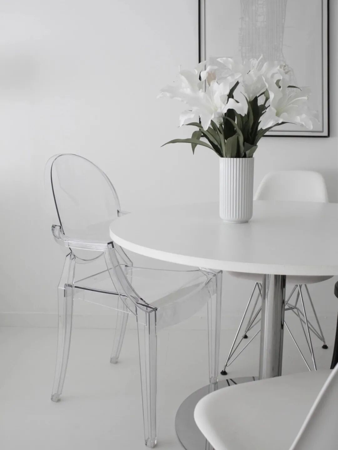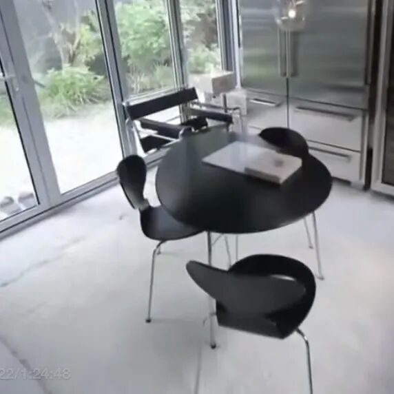 不输公园的庭院里还放了一灯一椅,在乔木绿叶之间专门挑了把植物椅,呼应枝桠的生命力,真的很会啊。还有伊姆斯餐椅,两位男孩都有入手。刘亚仁的玩法是同色不同款。其实同款不同色,也是混搭的方法之一。马伯骞的是扶手款,买了白色、粉色,拿来跟郁金香桌和蚂蚁椅搭配,蛮亮眼的。我发现角落里还放了张5万+的伊姆斯躺椅,是我梦想中的葛优瘫了。“任性”地搭配椅子,个人觉得最好发挥的是餐椅,谁说桌椅非要成套地用呢?宜家就有很多类似款,不同的配色和材质都能让沉闷的餐厅更有新鲜感。