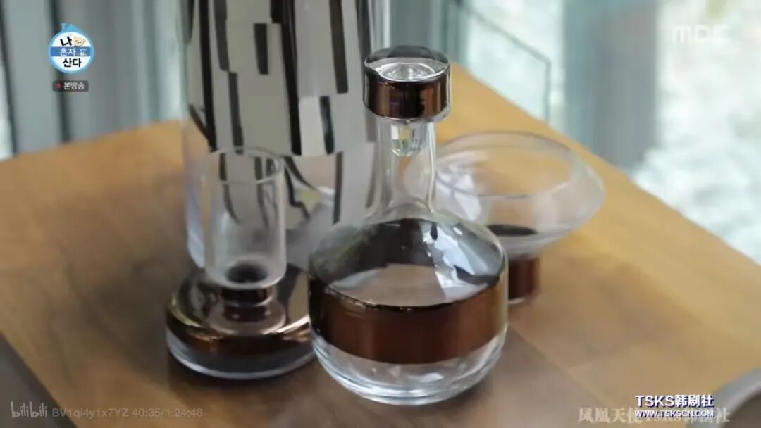 刘、马二人的家装都是这个思路,通体纯白浅灰就像一块画布,别说玩混搭,任你把家摆成博物馆都能hold住。刘亚仁学过美术,蛮喜欢收藏艺术摆件和挂画的。他家几乎都是白墙,色彩都靠挂画点缀,反而有种错落有致的精彩。Tom dixon的酒器