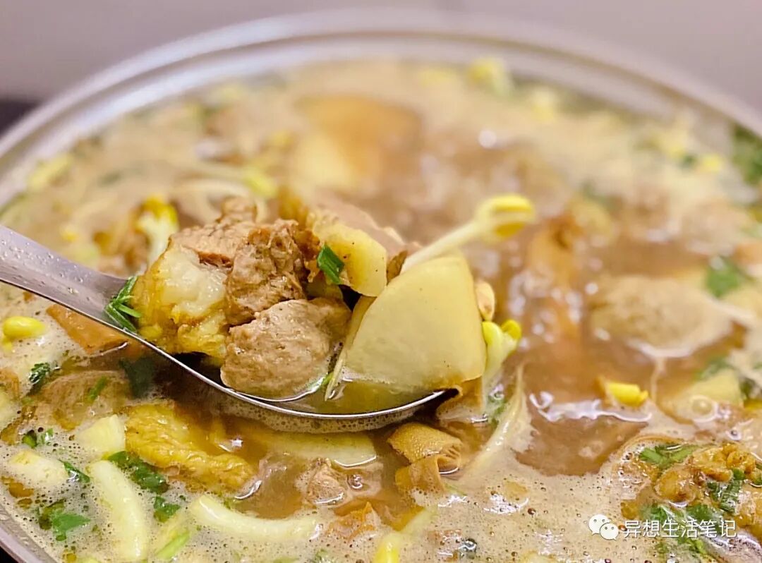 汕尾挺多家庭会煲鱼鳔汤,鱼鳔滑滑的,胶质会让嘴唇变粘,秋冬喝它滋补又养胃。(鱼鳔汤切记撒胡椒粉趁热喝,冷了会有小腥味)还有个一定要吃的是鱼蛋!几乎家家户户都有存货。鱼蛋用的是马鲛鱼,白色的是纯鱼丸,我们叫它白丸;颜色偏暗的是马鲛鱼混猪肉,我们叫它肉丸。最简单的吃法是用水煮,直接吃能吃到鱼鲜味,不用蘸料就很好吃,口感Q弹~和腐竹、慈菇一起煲成汤也是家常做法,有菜有肉有汤,一人食也能很丰盛。