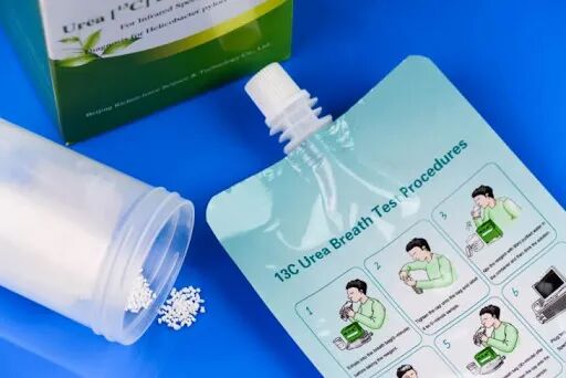 比起做痛苦且价格昂贵的肠胃镜,C13尿素呼气检测简单且准确度更高,先吹满一袋子气、服用尿素胶囊,隔半小时再吹第二袋气即可。
