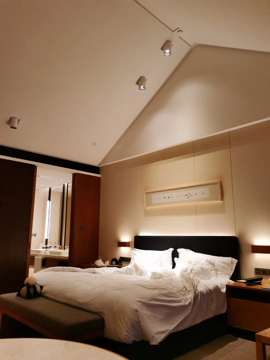 我选的豪华湖景房够大,露台也很宽敞,湖光山色就在眼前。因为在顶楼(最高就3层),房顶是尖顶的,显得更大。