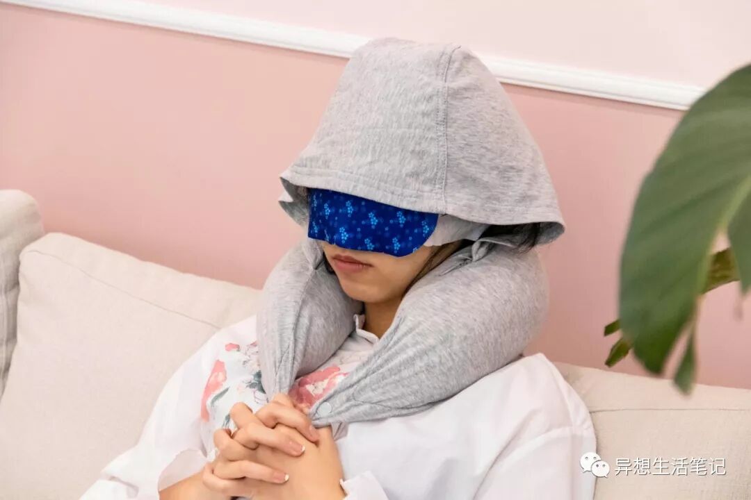 两个牌子的带帽颈枕都可以选,除了最基本的支撑脖子功能,它们比普通颈枕多了个帽子,能挡住大半张脸,多多少少能遮住睡觉时张开嘴的睡颜。